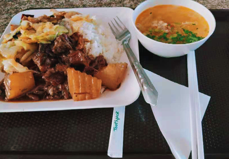 說環(huán)境之類的都是虛的,一個真正好的食堂,當然還是伙食最重要,而老撾國立大學的食堂能入選“別人家的”系列,物美價廉的伙食爭分不少。