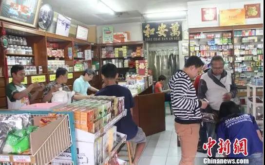 ▲圖為萬(wàn)隆市具80多年歷史的“萬(wàn)安和”中藥店,土生土長(zhǎng)的印尼顧客越來(lái)越多,而且他 們中的絕大部分都成了“回頭客”。林永傳 攝