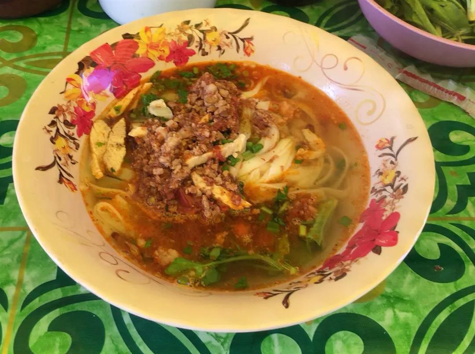 老撾語(yǔ)叫fer,基本跟中文里的“粉兒”發(fā)音一樣,是老撾的標(biāo)準(zhǔn)餐食,早中晚都可以吃到,分米粉和黃面條,英文統(tǒng)稱(chēng)Noodle soup,湯汁非常鮮美,搭配一些雞肉、牛肉或者豬肉,同時(shí)再另配一盤(pán)由豇豆、卷心菜、薄荷葉、紫蘇葉構(gòu)成的純生菜,食客可以根據(jù)自己的口味加魚(yú)露、青檸汁、干辣椒或是泰式辣椒醬,味道極佳。