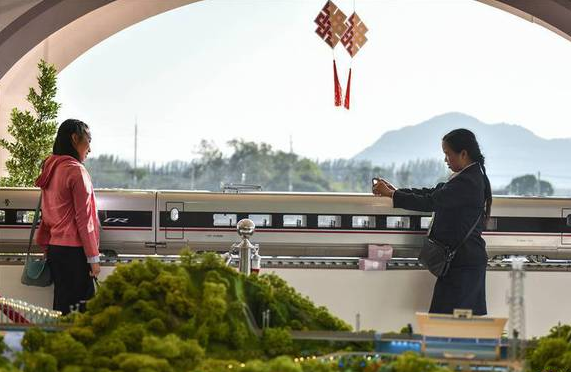 這是在泰國東北部呵叻府巴沖縣舉行的中泰鐵路合作項(xiàng)目一期工程開工儀式上展出的中國復(fù)興號(hào)高鐵列車模型(12月21日攝)。