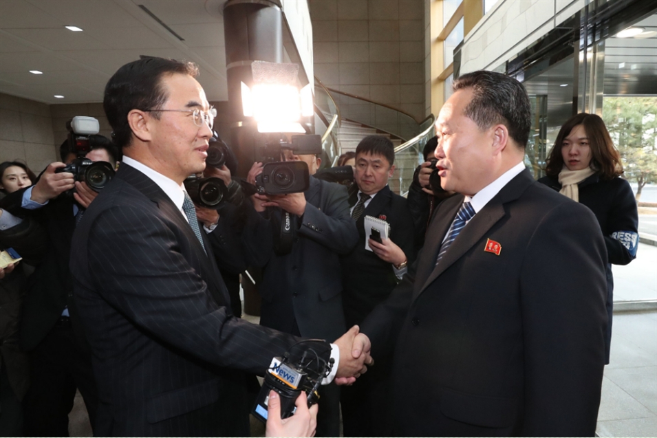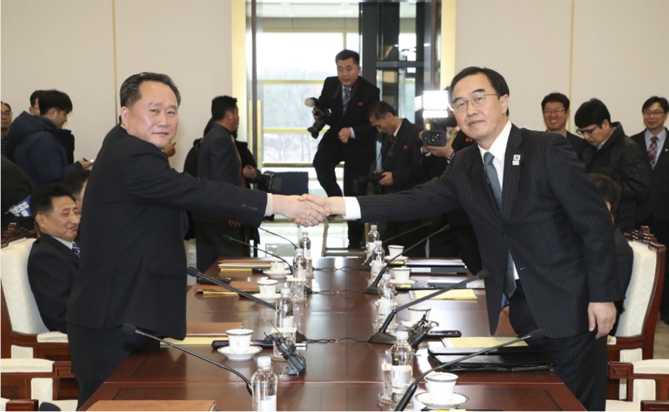 當(dāng)?shù)貢r(shí)間2018年1月9日,韓國和朝鮮代表在板門店韓方一側(cè)“和平之家”舉行韓朝高級別會(huì)談,就朝方派代表團(tuán)參加平昌冬奧會(huì)、南北關(guān)系改善等共同關(guān)心的問題進(jìn)行討論。這是時(shí)隔兩年多之后,韓朝雙方再次實(shí)現(xiàn)高級別對話。