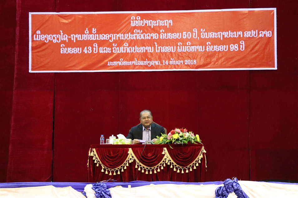 老撾國(guó)立大學(xué)領(lǐng)導(dǎo)班子、骨干教師和全體師生參與了本次會(huì)議,大家共同收聽(tīng)了“建立華潘省會(huì)曬市革命根據(jù)地50周年”,“老撾人民民主共和國(guó)成立43周年”,“主席誕辰地方梵?。ǚ鸾堂~)98周年”等重要講話內(nèi)容,深入學(xué)習(xí)講話精神。