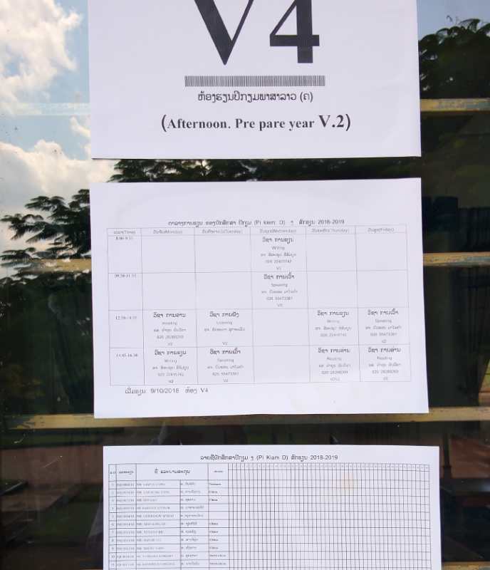 這是V4班的課程表,都是老撾文,所以大家也不用糾結(jié)了,就當(dāng)走個形式,還是聽小編講解吧~