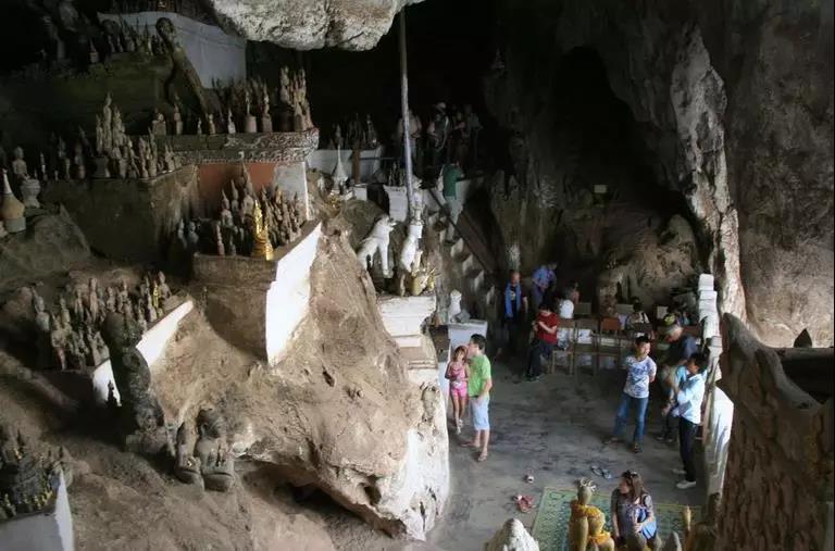 坦普坎溶洞是老撾人心中神圣的地方,受歡迎的大部分原因是因為溶洞里的瀉湖,主洞室供奉著一尊泰國風(fēng)格的青銅臥佛,有幾條幽深的地道從主洞室分岔進(jìn)入山腹。