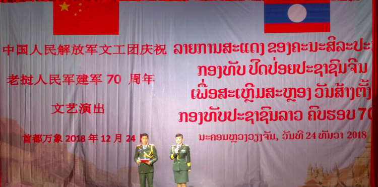 中國人民解放軍文工團(tuán)慶祝老撾人民軍建軍70周年文藝演出12月24日晚在老撾首都萬象舉行。